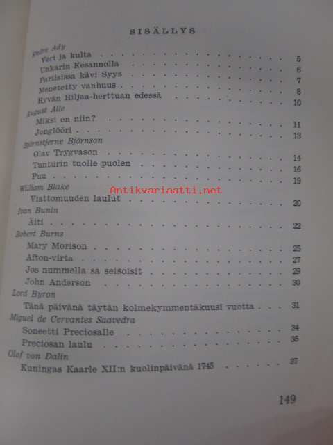 | Saatavilla | 1 kpl | | Julkaisuvuosi | 1954 | | Sivuja | 151 | | Painos | 1. | | Kunto | K3 | | Sidonta/painoasu | Nidottu (pehmeäk.) | | Kielet | Suomi |