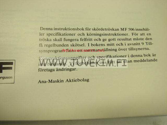 Massey Ferguson 506 Skördetröska -instruktionsbok