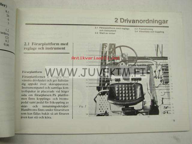 Ana-Maskin Ab, 197515 x 21 cm leikkuupuimurin käyttöohjekirja ruotsiksi.