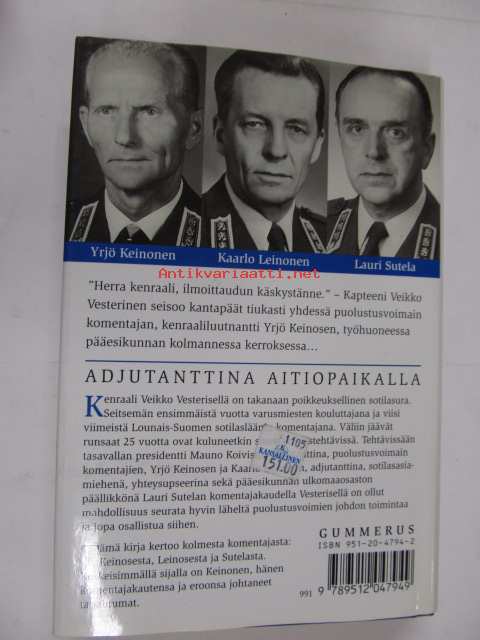 | Saatavilla | 1 kpl | | Julkaisuvuosi | 1995 | | Sivuja | 256 | | Painos | 1. | | Kunto | K3 | | Sidonta/painoasu | Sidottu (kansipaperit) | | ISBN | 951-20-4794-2 | | Kielet | Suomi |