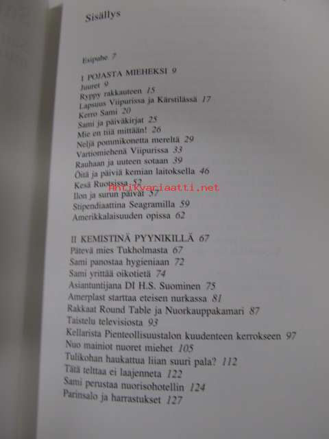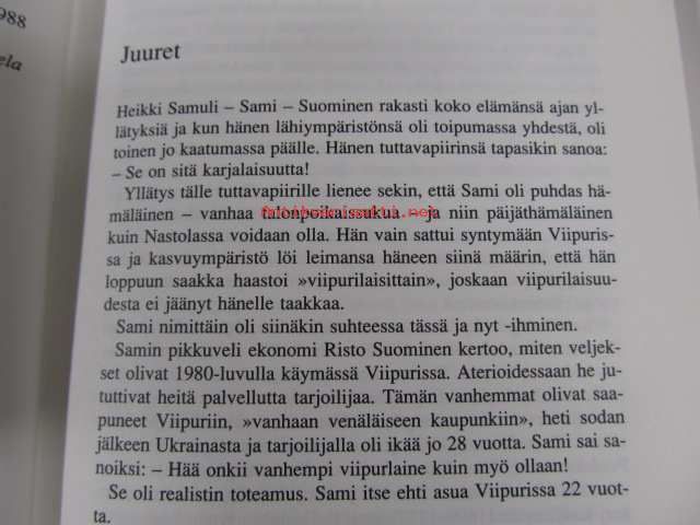 | Saatavilla | 1 kpl | | Julkaisuvuosi | 1988 | | Sivuja | 207 | | Painos | 1. | | Kunto | K3 | | Sidonta/painoasu | Sidottu (kansipaperit) | | ISBN | 951-1-10231-1 | | Kielet | Suomi |