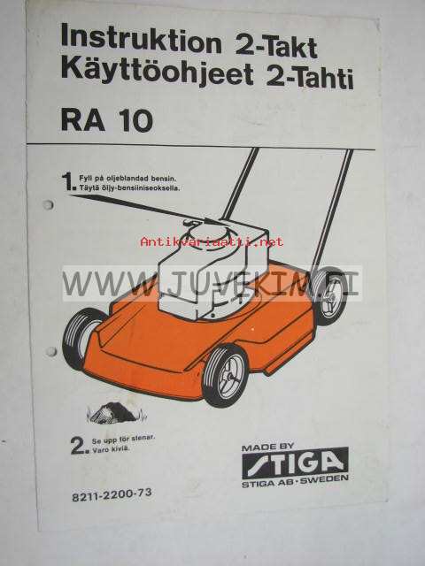 Stiga RA 10 ruohonleikkuri -käyttöohjekirja + rungon varaosakuvasto