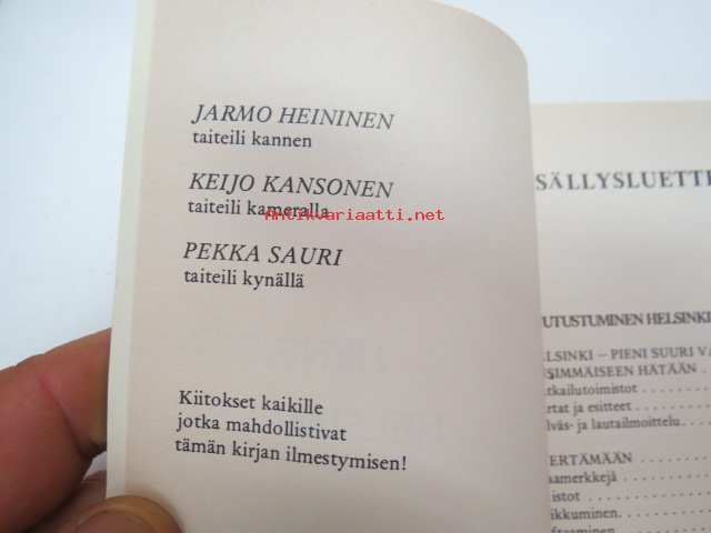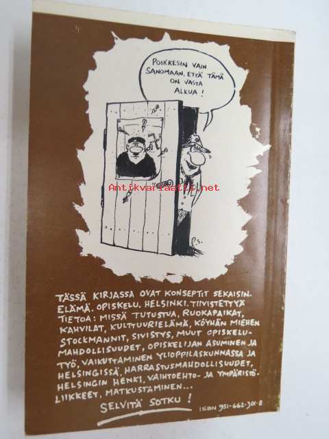 | Saatavilla | 1 kpl | | Julkaisuvuosi | 1982 | | Sivuja | 194 | | Painos | 2. | | Kunto | K3 | | Sidonta/painoasu | Nidottu (pehmeäk.) | | ISBN | 951-662-301-8 | | Kielet | Suomi |