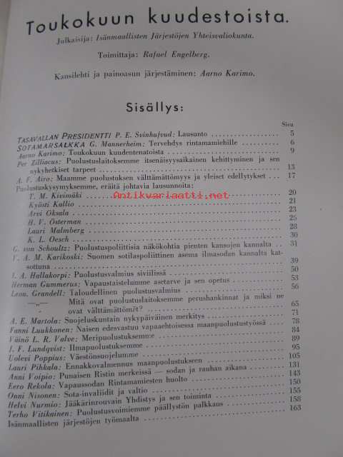 | Saatavilla | 1 kpl | | Julkaisuvuosi | 1936 | | Sivuja | 174 | | Painos | 1 | | Kunto | K2 | | Sidonta/painoasu | Nidottu (pehmeäk.) | | Kielet | Suomi |