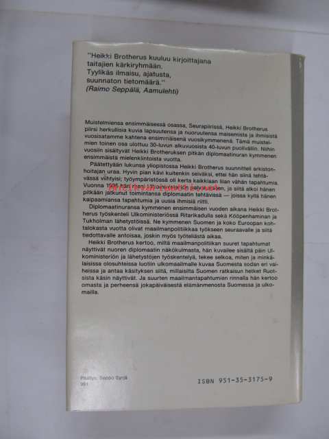 | Saatavilla | 1 kpl | | Julkaisuvuosi | 1984 | | Sivuja | 420 | | Painos | 1 | | Kunto | K3 | | Sidonta/painoasu | Sidottu (kansipaperit) | | ISBN | 951-35-3175-9 | | Kielet | Suomi |