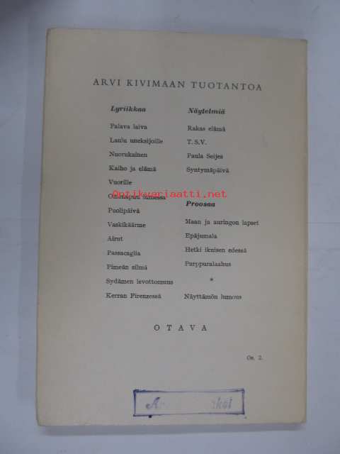 Kivimaa Arvi, Otava, 1956Aukileikkaamaton