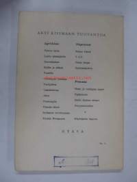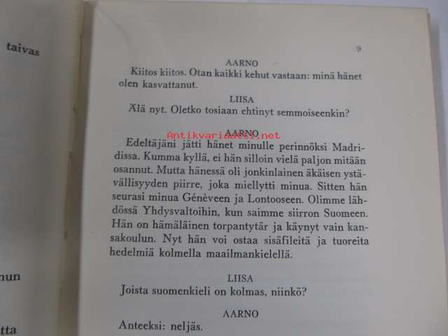 | Saatavilla | 1 kpl | | Julkaisuvuosi | 1956 | | Sivuja | 117 | | Painos | 1 | | Kunto | K3 | | Sidonta/painoasu | Nidottu (pehmeäk.) | | Kielet | Suomi |