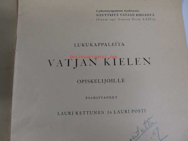 Kettunen Lauri, Posti Lauri, Suomalais-Ugrilainen Seura, 1932