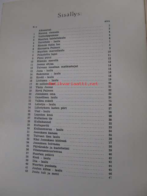 | Saatavilla | 1 kpl | | Julkaisuvuosi | 1961 | | Sivuja | 47 | | Painos | 1 | | Kunto | K3 | | Sidonta/painoasu | Vihko | | Kielet | Suomi |