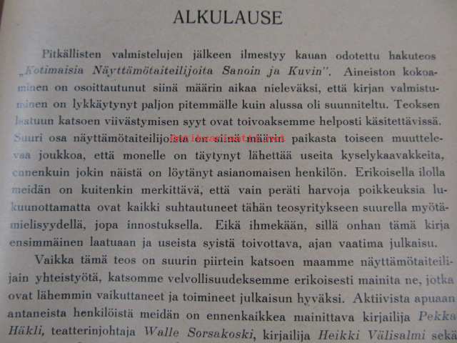 Kotimaisia näyttämötaitelijoita sanoin ja kuvin / Inhhemska scenkonstnärer i ord och bild