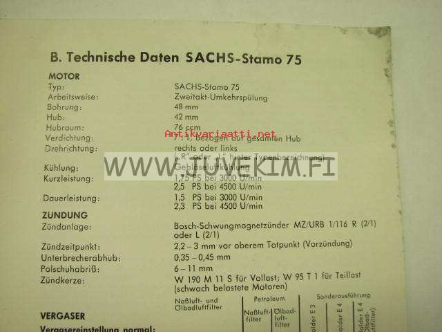 Sachs Stamo 50/75 Handbuch nr 410.2/4 -käsikirja