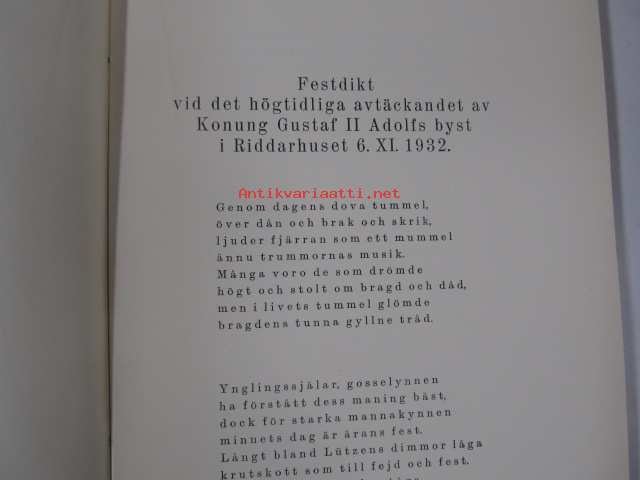 | Saatavilla | 1 kpl | | Julkaisuvuosi | 1937 | | Sivuja | 229 | | Painos | 1. | | Kunto | K2 | | Liimasidos irti | | Sidonta/painoasu | Nidottu (pehmeäk.) | | Kielet | Ruotsi |
