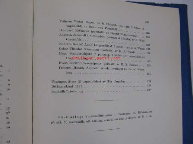Finlands Adelsförbunds Årsskrift VI 1931 -vuosikirja mm. henkilöartikkeleineen