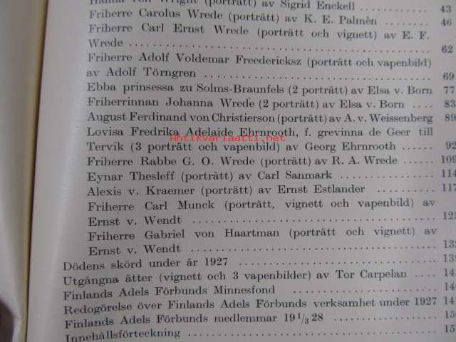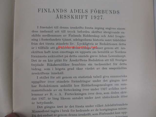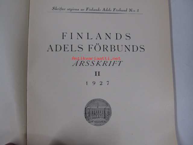 Finlands Adelsförbunds Årsskrift II 1927 -vuosikirja mm. henkilöartikkeleineen