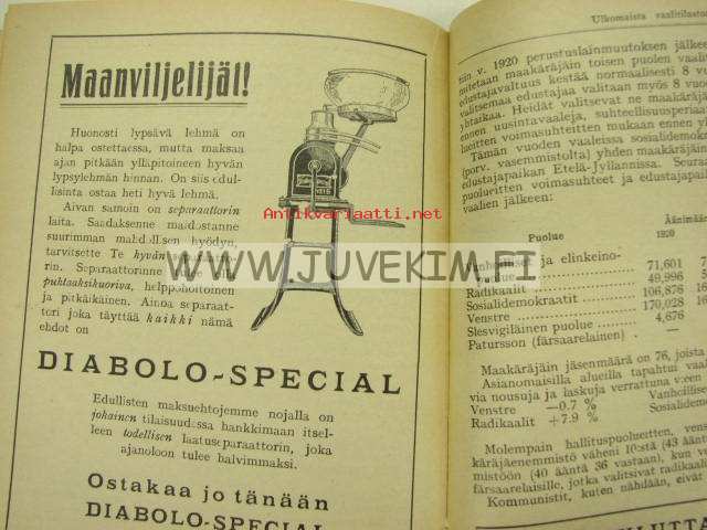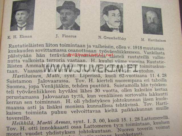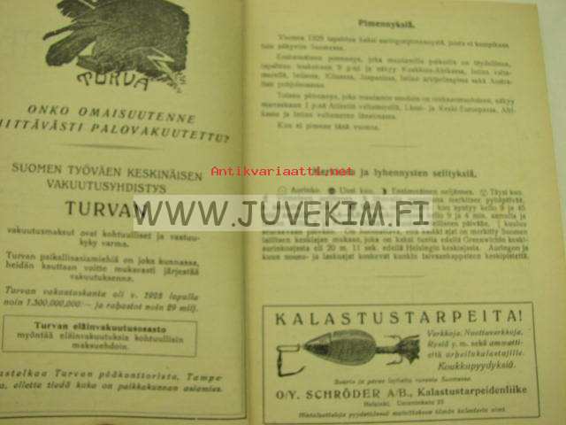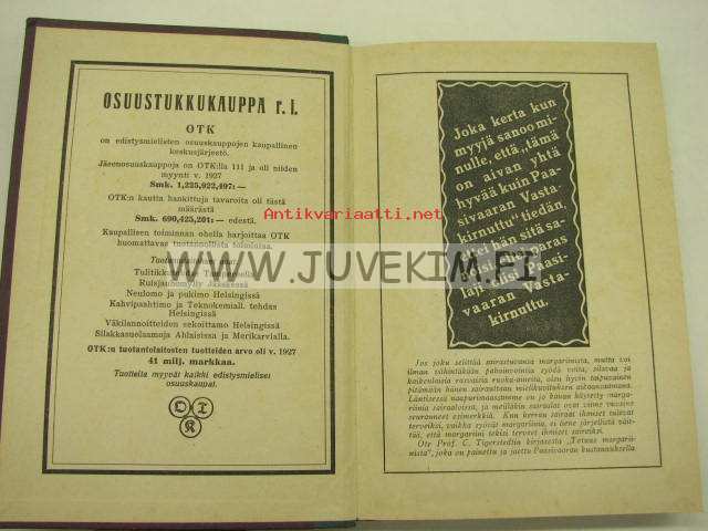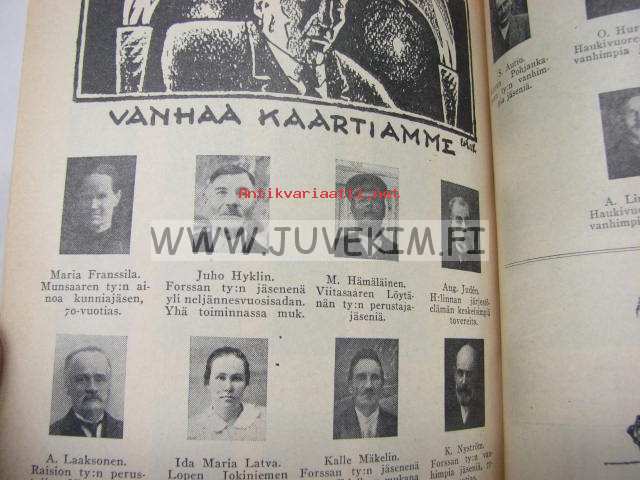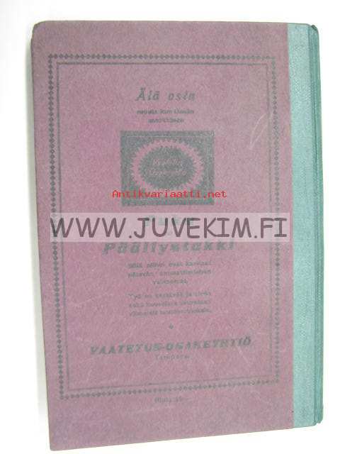 | Saatavilla | 1 kpl | | Julkaisuvuosi | 1928 | | Sivuja | 240 | | Painos | 1. | | Kunto | K2 | | Sidonta/painoasu | Sidottu (kovak.) | | Kielet | Suomi |