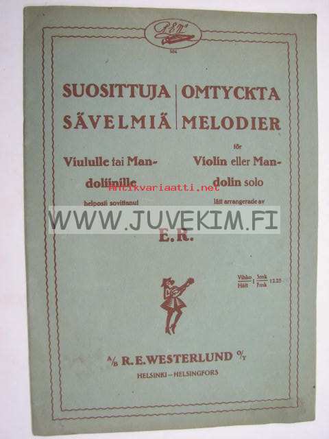Suosittuja sävelmiä Viululle tai Mandoliinille helposti sovittanut E.R. Omtyckta melodier för Violin eller Mandolin Solo lätt arrangerade av E.R.