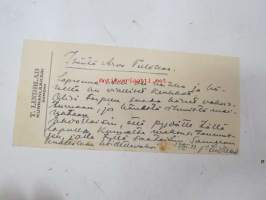 |  | Kivikartio Oy Rakennustoimisto, Turku, 25.8.1949 -asiakirja (lasku) liitteineen